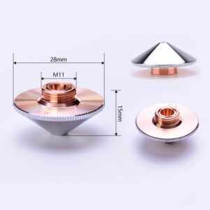 - They are commonly used for cutting metals such as stainless steel, aluminum alloy, and copper. These nozzles typically utilize nitrogen as the auxiliary gas. The faster gas flow is suitable for these materials as it helps in achieving cleaner cuts without excessive oxidation.